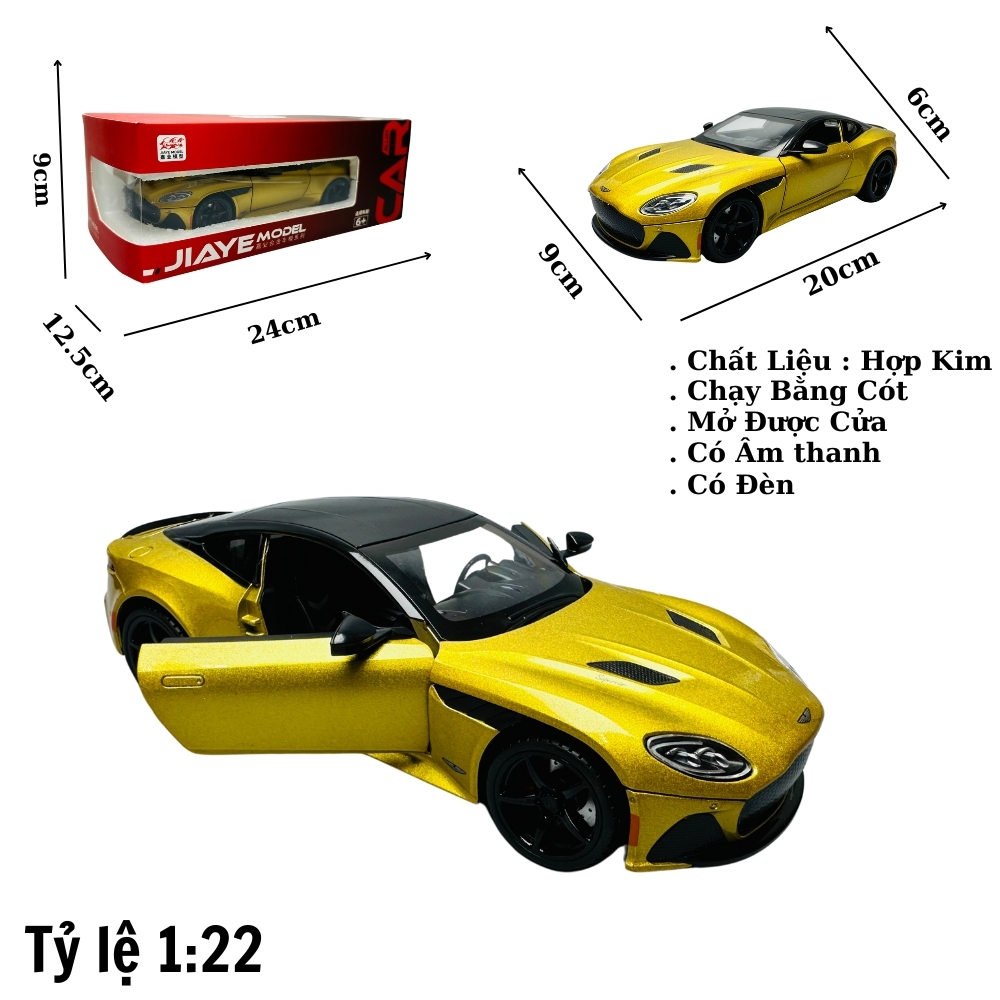 🔥Mô Hình Xe aston martin vàng Hợp kim có thể mở cửa - bánh sau chạy cót - Có tiếng - đèn pha sáng - Dài 20cm - rộng 9cm - cao 6cm - nặng ~ 1000gram - FULL BOX : box màu