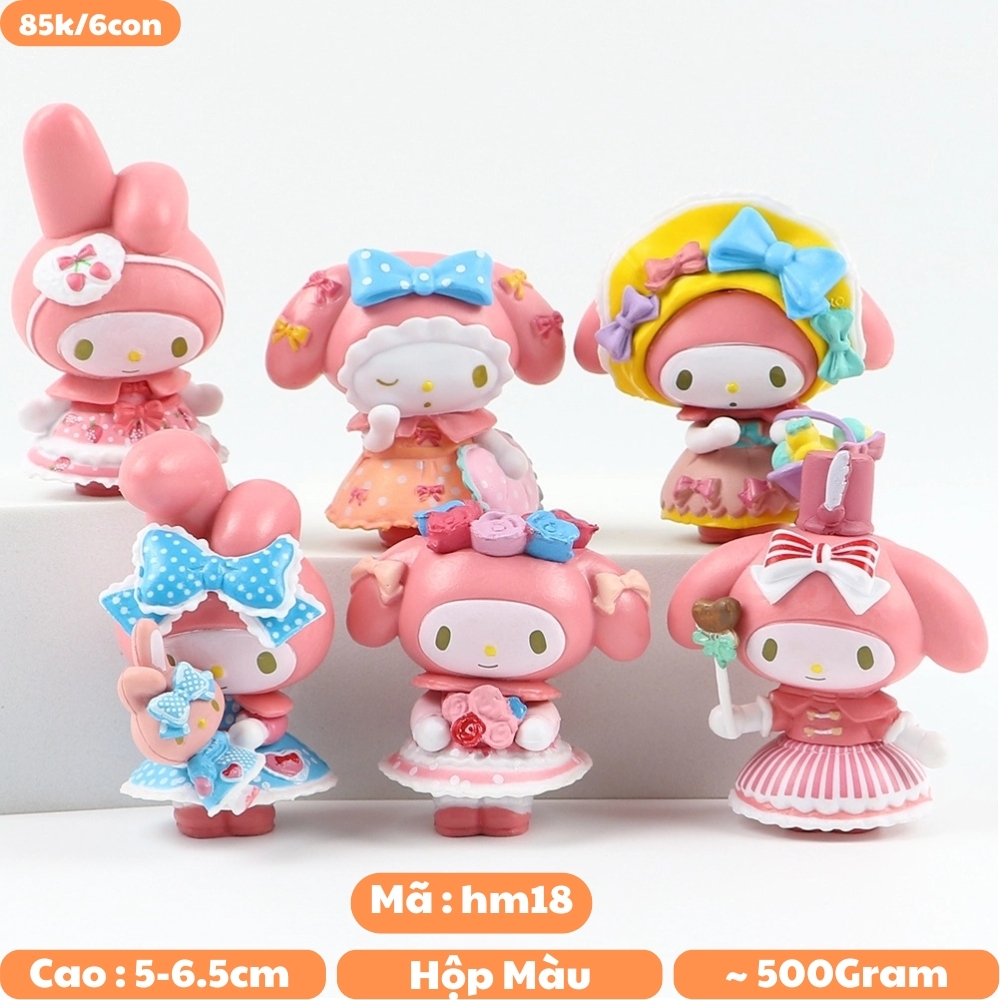 Mô hình kuromi bộ 6 kuromi hồng blind box - cao 5 - 6.5cm - Nặng 500gram - Bọc Túi - Hộp Màu