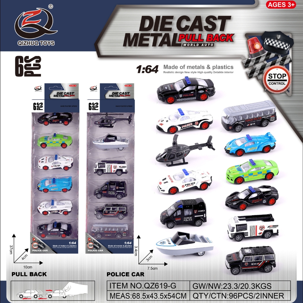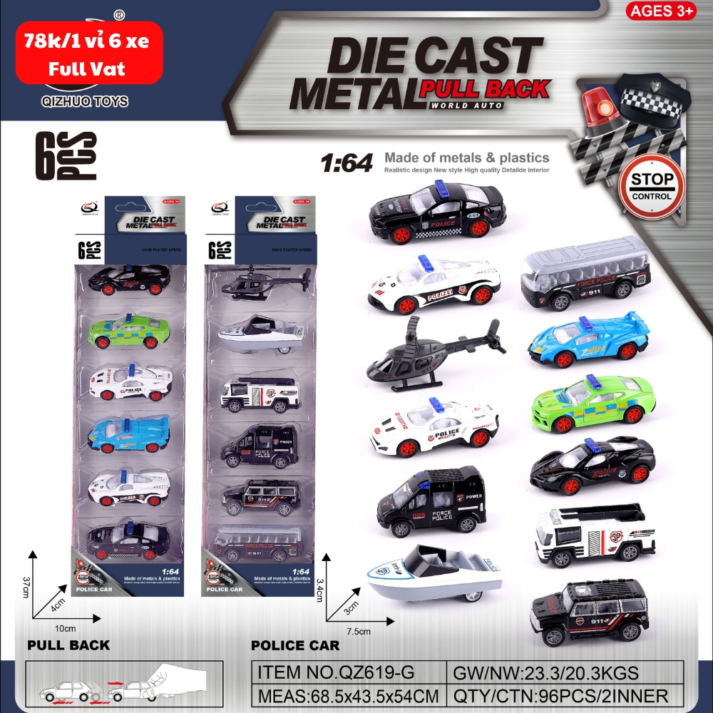 Mô Hình 1 vỉ 6 Xe cảnh sát - Cao 32cm - Ngang 10cm - Vỉ Nhựa SKU : oto-QZ619-G - ( Vat : 003-03-50 )