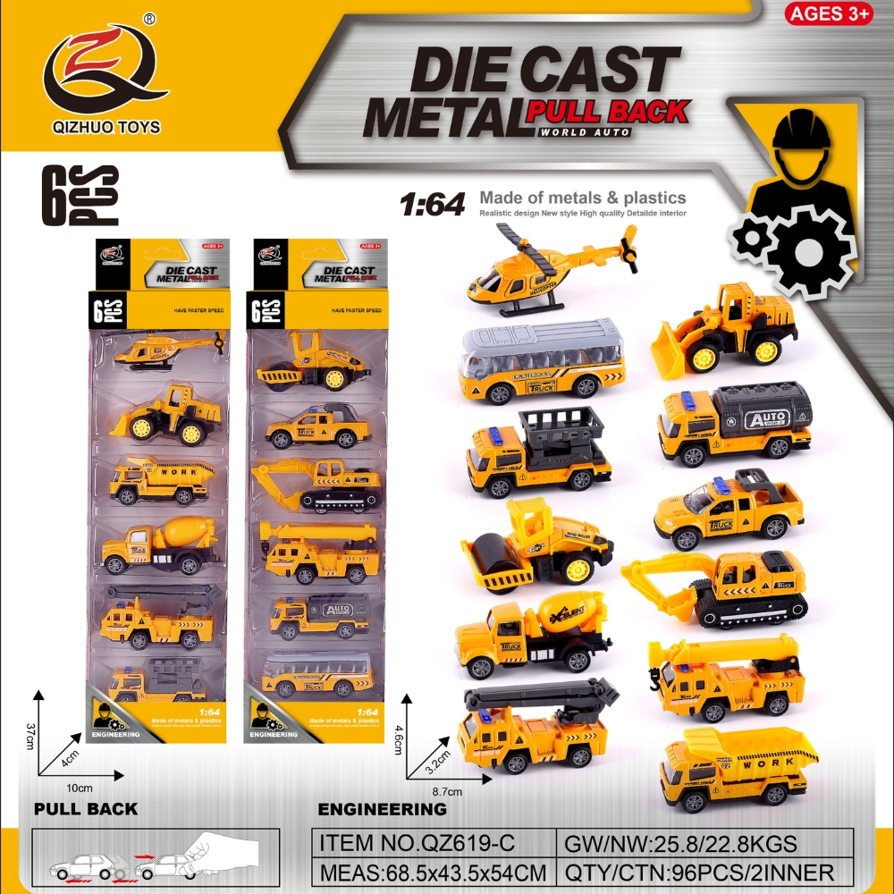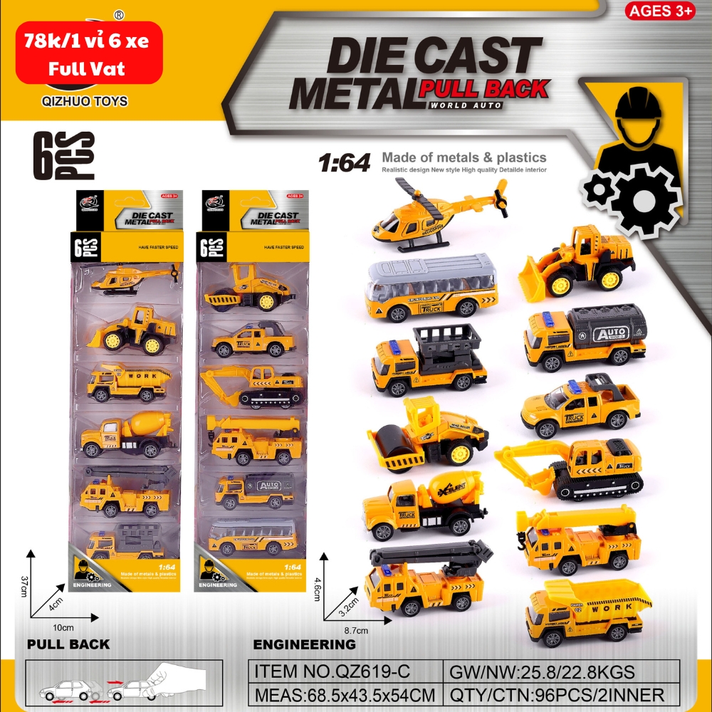 Mô Hình 1 vỉ 6 Xe Công Trình - Cao 32cm - Ngang 10cm - Vỉ Nhựa SKU : oto-QZ619-C - ( Vat : 003-03-50 )