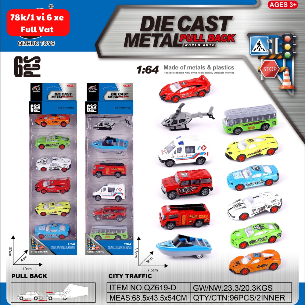 Mô Hình 1 vỉ 6 Xe Tổng Hợp - Cao 32cm - Ngang 10cm - Vỉ Nhựa SKU : oto-QZ619-D - ( Vat : 003-03-50 )