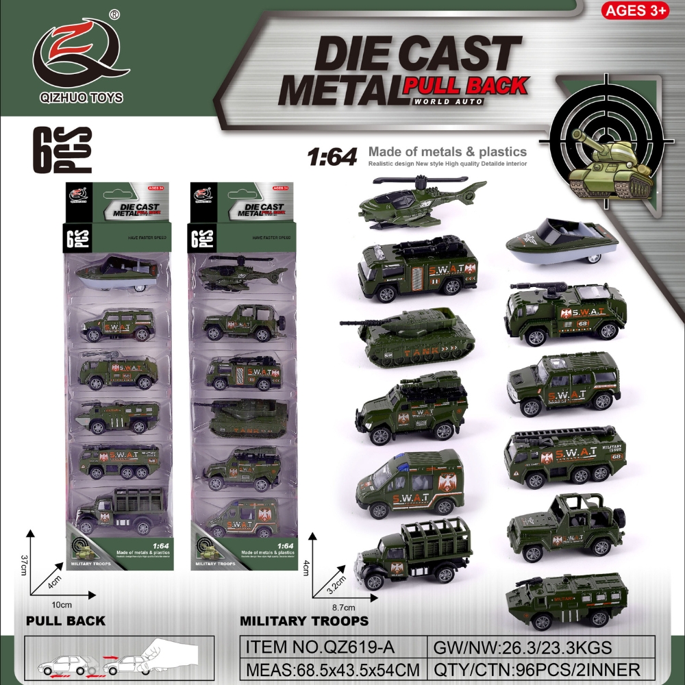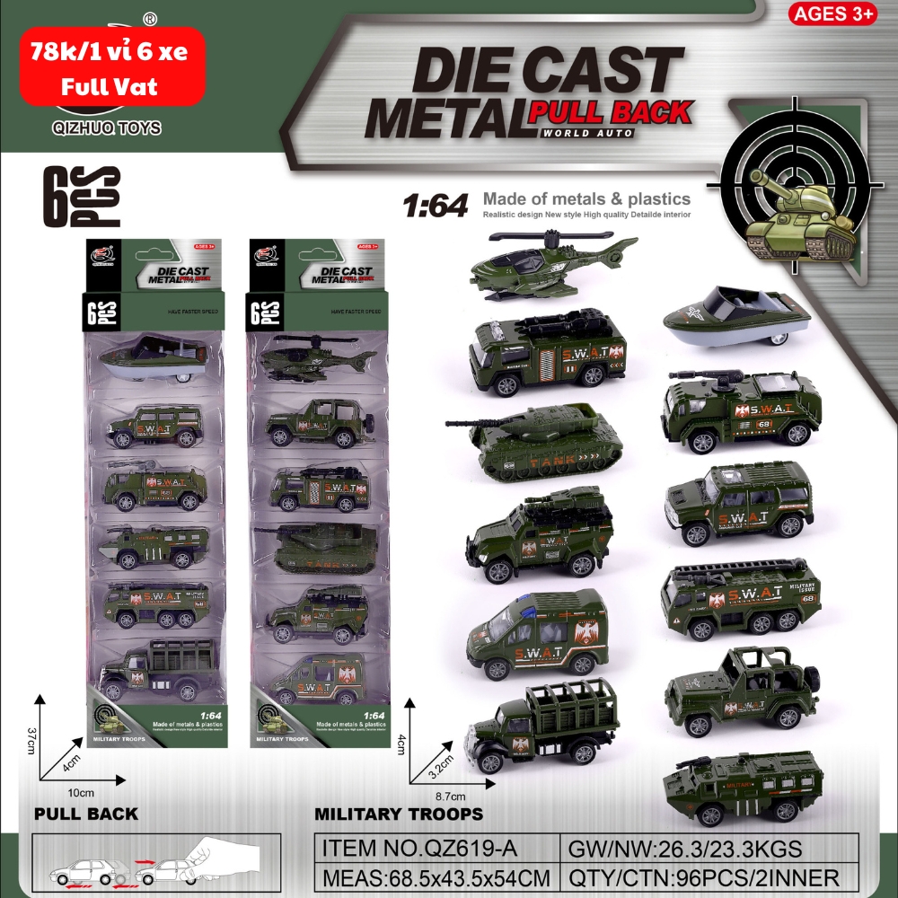 Mô Hình 1 vỉ 6 Xe Quân Sự - Cao 32cm - Ngang 10cm - Vỉ Nhựa SKU : oto-QZ619-A - ( Vat : 003-03-50 )