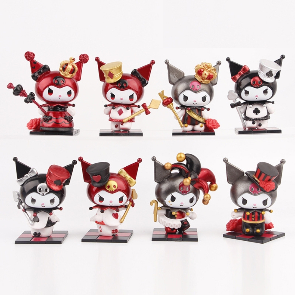 Mô hình kuromi Bộ 8 Melody Gemini Pudding Dog Cinnamon Dog Kuromi có đế Bản Blind Box - cao 8cm - Nặng 200gram - Bọc Túi - Hộp Màu