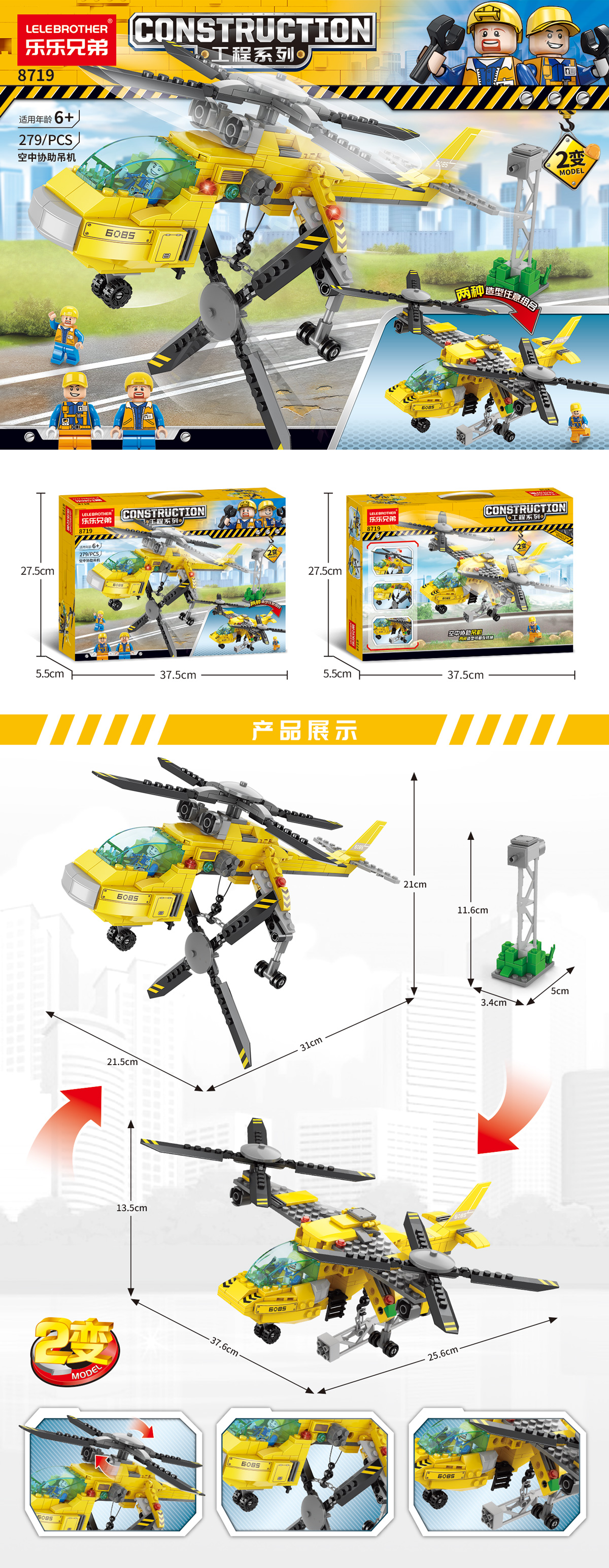 Bộ Lắp Ghép Xe Cần Cẩu Hỗ Trợ Trên Không 279pcs. SKU: LG-8719 (VAT 001-22-75) K127-T2-S4