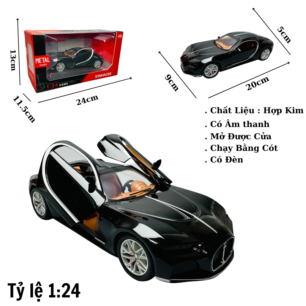 🔥Mô Hình Xe Bugati đen 1.24 Hợp kim có thể mở cửa - bánh sau chạy cót - Có tiếng - đèn pha sáng - Dài 20cm - rộng 9cm - cao 5cm - nặng ~ 1000gram - FULL BOX : box màu