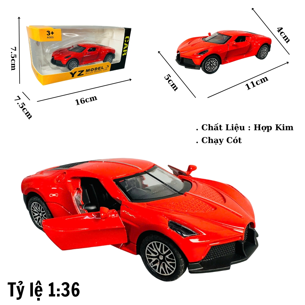 🔥Mô Hình xe bugati đỏ xọc trắng tỉ lệ 1:36 Hợp kim có thể mở cửa - bánh sau chạy cót - Dài 11cm - rộng 5cm - cao 5cm - nặng : 500gram - FULL BOX : box màu SKU : oto431