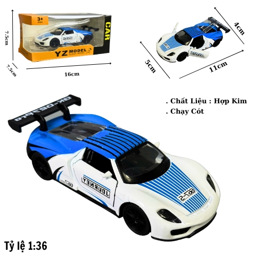 Mô Hình Xe Ferrari đua trắng xanh tỉ lệ 1:36 Hợp kim có thể mở cửa - bánh sau chạy cót - Dài 11cm - rộng 5cm - cao 4cm - nặng : 300gram - FULL BOX : box màu SKU : oto502b - K67-T1-S10