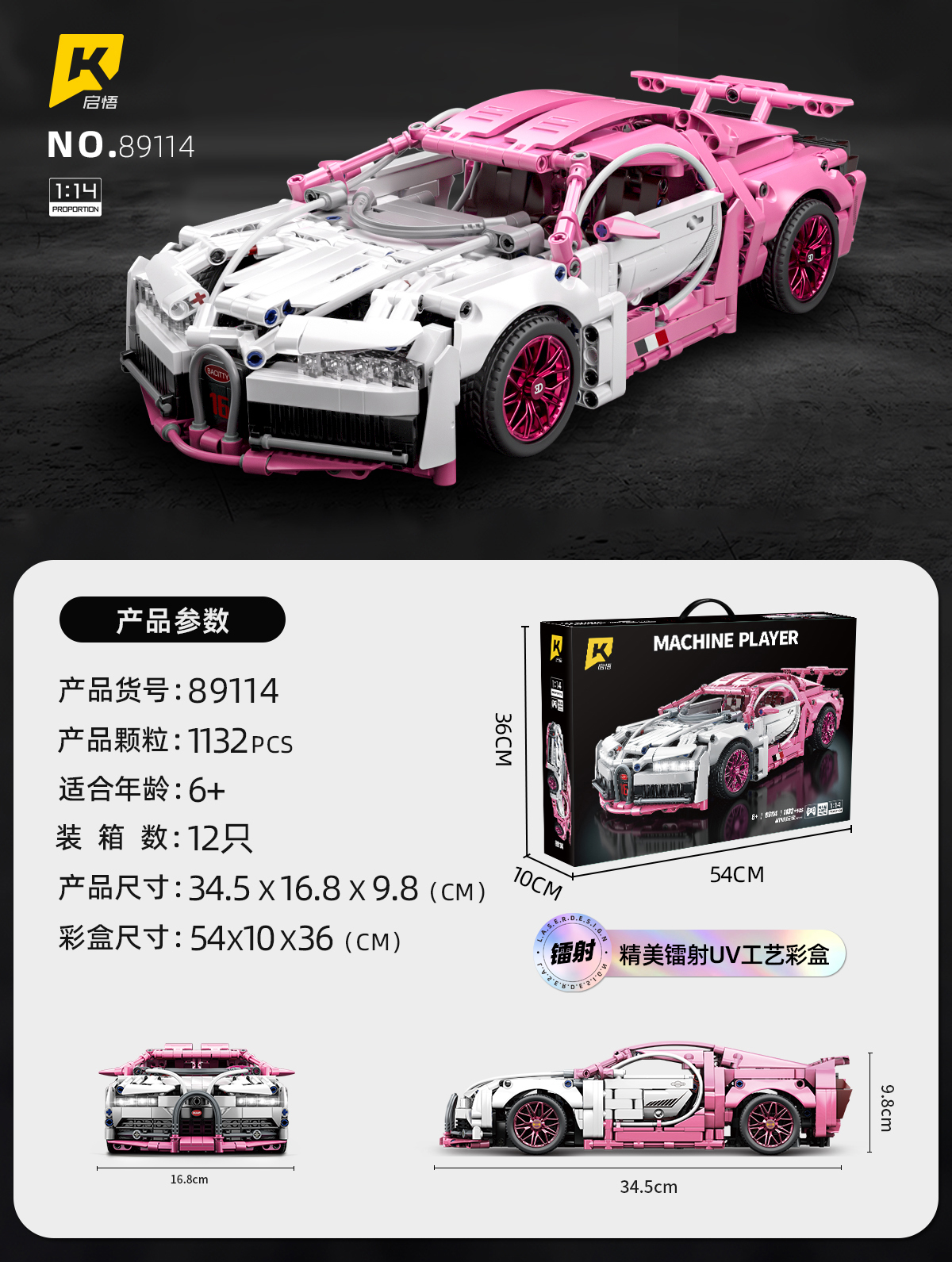 Lắp ghép xe ô tô Pink-White Bugatti (static) tỷ lệ 1:14 . 1132 pcs. Sku: LG-89114 ( VAT 001-07-200 ) K100-T4-S6,S7