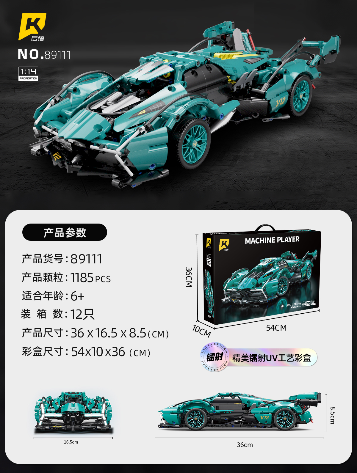 Lắp ghép xe ô tô Tiffany-Blue V12 (static) tỷ lệ 1:14. 1185 pcs. Sku: LG-89111 ( VAT 001-07-200 ) K97-T4-S10