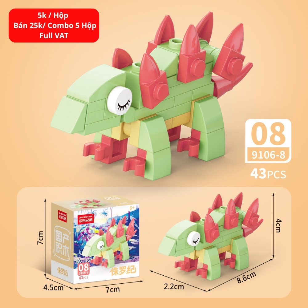 Combo 5 Bộ Lắp Ghép Mô Hình Khủng Long 43pcs. SKU: LG-9106-8 ( VAT 001-C5-11 ) - K135-T1-S17