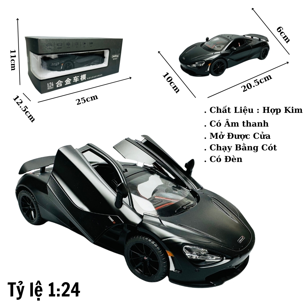 🔥Mô Hình Xe Mclaren đen 1.24 Hợp kim có thể mở cửa - bánh sau chạy cót - Có tiếng - đèn pha sáng - Dài 20.5cm - rộng 10cm - cao 6cm - nặng ~ 1000gram - FULL BOX : box màu