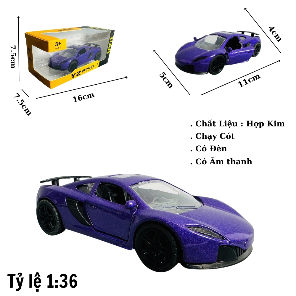 🔥Mô Hình xe mclaren tím mới tỉ lệ 1:36 Hợp kim có thể mở cửa - bánh sau chạy cót - Dài 11cm - rộng 5cm - cao 4cm - nặng : 500gram - FULL BOX : box màu