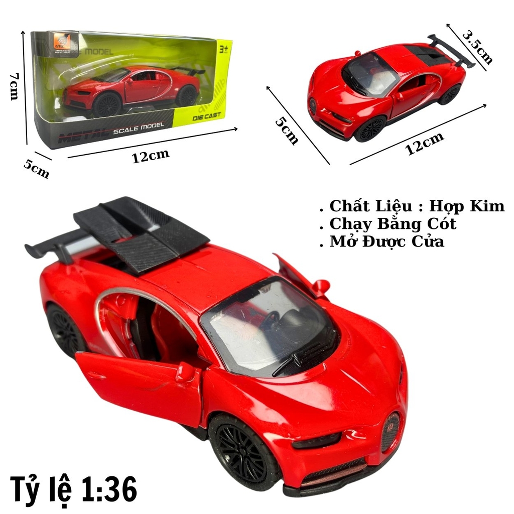 🔥Mô Hình xe Bugati màu đỏ - tỉ lệ 1:36 Hợp kim có thể mở cửa - bánh sau chạy cót - Dài 12cm - rộng 5cm - cao 3.5cm - nặng : 200gram - FULL BOX : box màu