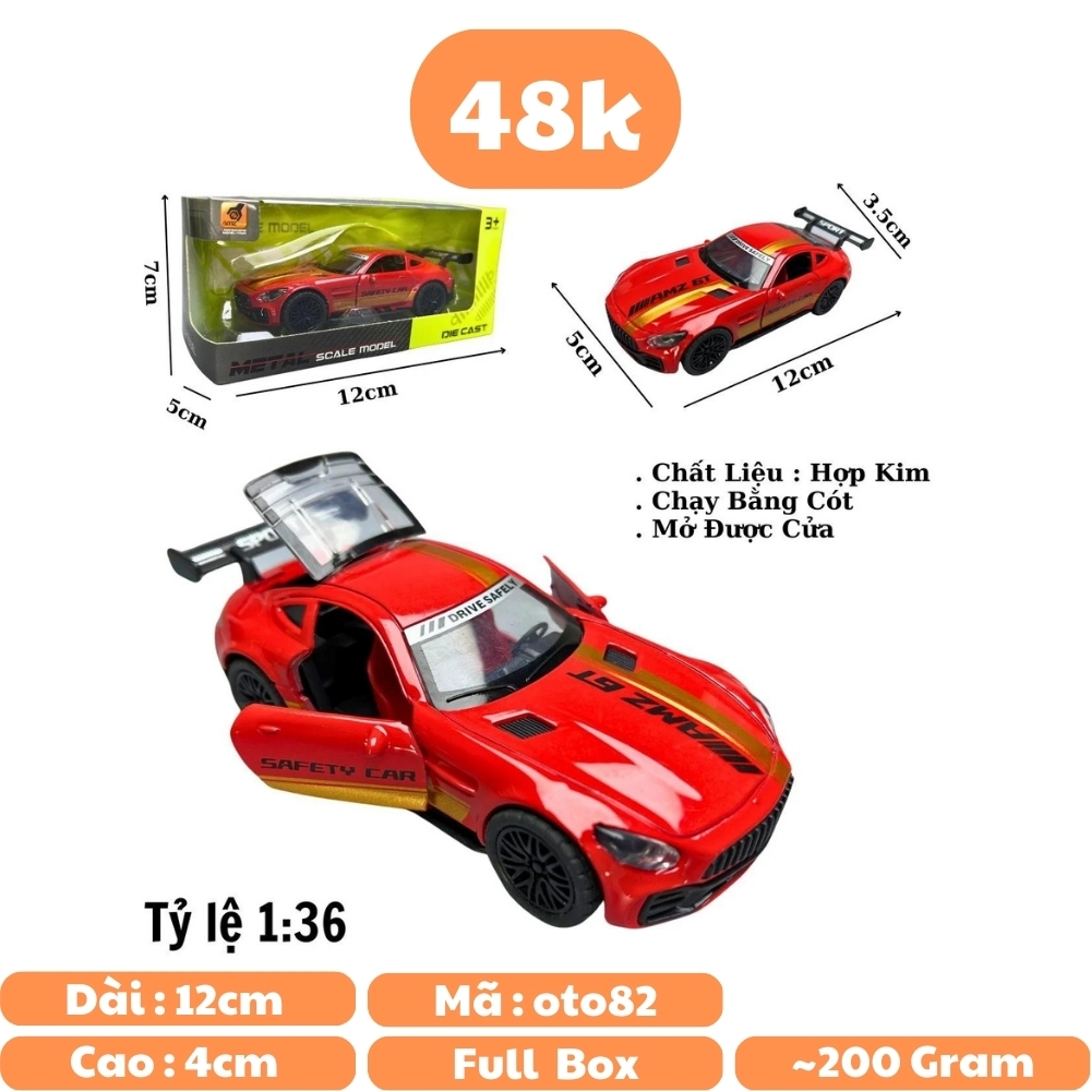 🔥Mô Hình xe Mercedes AMG GTR Màu đỏ Tem vàng - tỉ lệ 1:36 Hợp kim có thể mở cửa - bánh sau chạy cót - Dài 12cm - rộng 5cm - cao 3.5cm - nặng : 200gram - FULL BOX : box màu