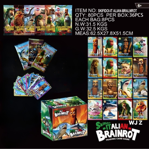 Pack anime Tung Tung Sahur ( 36 Pack 1 hộp - 1 Pack có 8 thẻ ) - dài 13.5cm - cao 12.5cm - Hộp màu