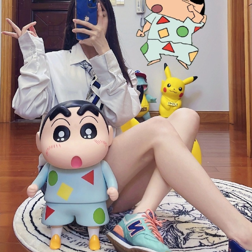 Mô Hình Shin bút chì áo xanh hoạ tiết bản to - Phụ Kiện : Đế - Cao 40cm - nặng 1500gram- Figure Cậu Bé Bút Chì - bọc túi OPP - Hộp Carton - K12-T4-S1