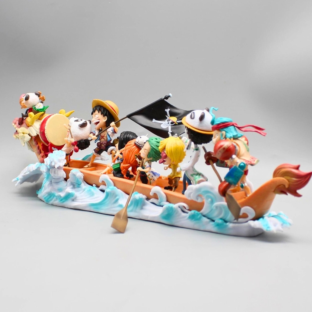 Mô Hình OnePiece băng mũ rơm chèo thuyền rồng - Cao 16cm - ngang 33cm - nặng 730gram - Box carton