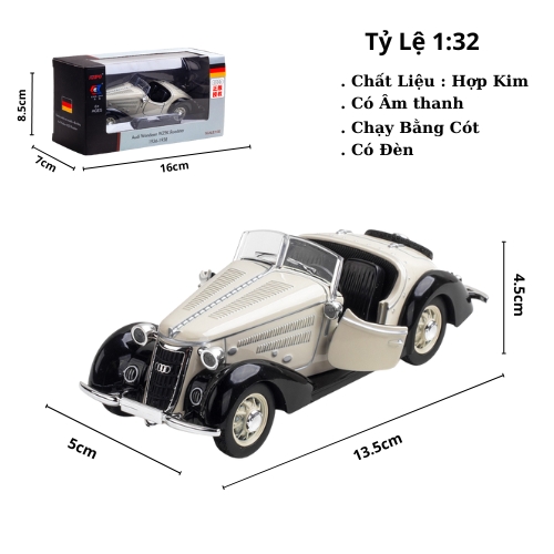 Mô Hình Xe wanderer w25k roadster trắng tỉ lệ 1:32 Hợp kim có thể mở cửa - bánh sau chạy cót - Dài 13.5cm- rộng 5cm - cao 4.5cm - nặng : 139gram - FULL BOX : box màu SKU : oto481c  K70-T2-S3