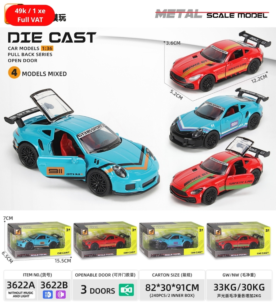 Mô Hình xe đua chất liệu hợp kim , tỉ lệ 1:36 - Dài 12.2cm - rộng 5.2cm - cao 3.6cm - SKU : oto-3622A - ( Vat : 003-01-35 )