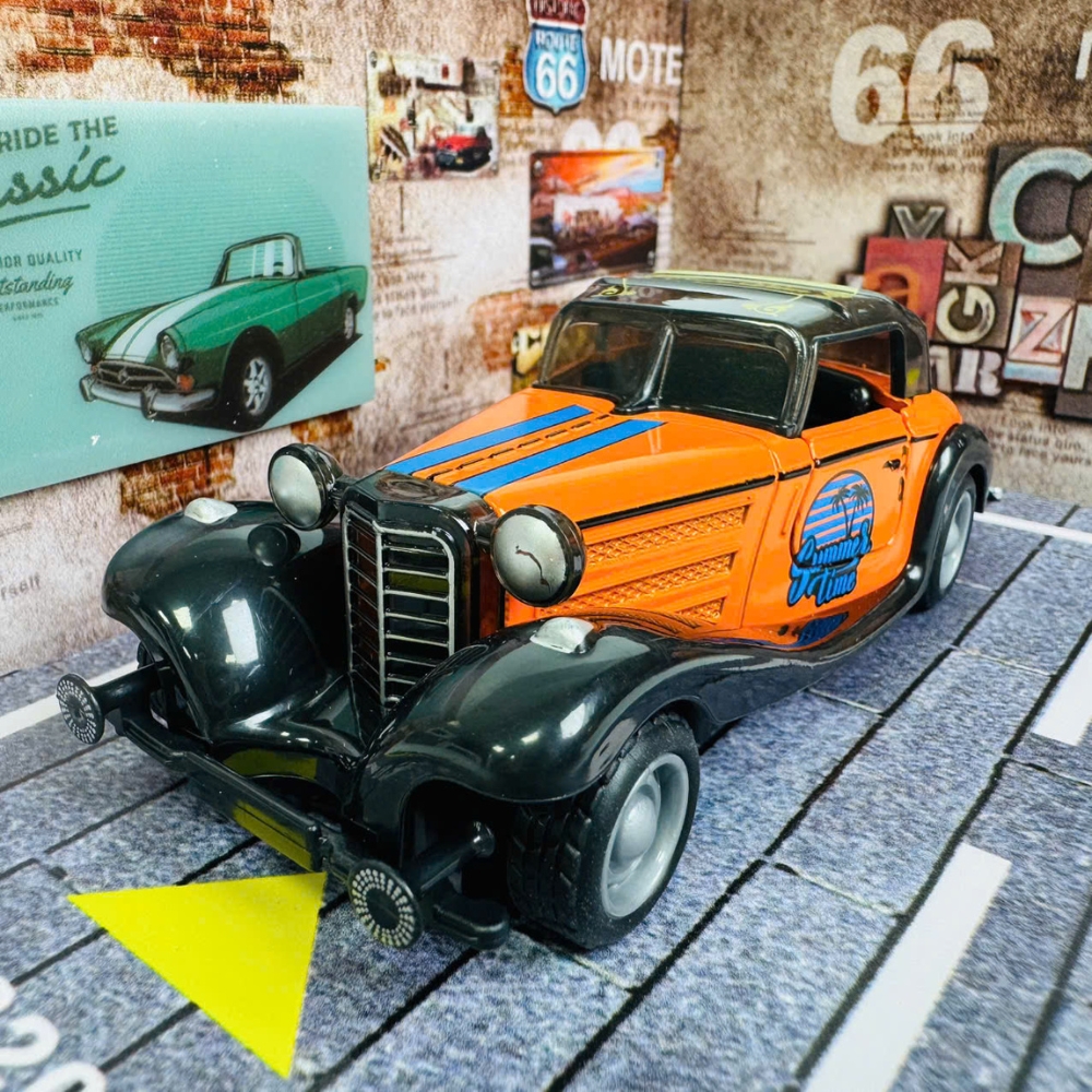 Mô Hình Xe cổ màu cam tỉ lệ 1:36 Hợp kim có thể mở cửa - bánh sau chạy cót - Dài 12.5cm - rộng 5.5cm - cao 4cm - nặng : 300gram - FULL BOX : box màu SKU : oto528b - K52-T4-S2