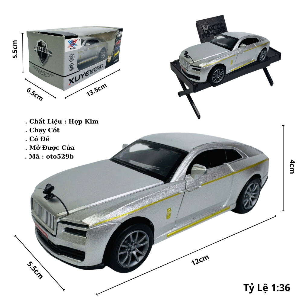 Mô Hình Xe roll royce xám tỉ lệ 1:36 Hợp kim có thể mở cửa - bánh sau chạy cót - Dài 12.5cm - rộng 5.5cm - cao 4cm - nặng : 300gram - FULL BOX : box màu SKU : oto529b - K52-T3-S2