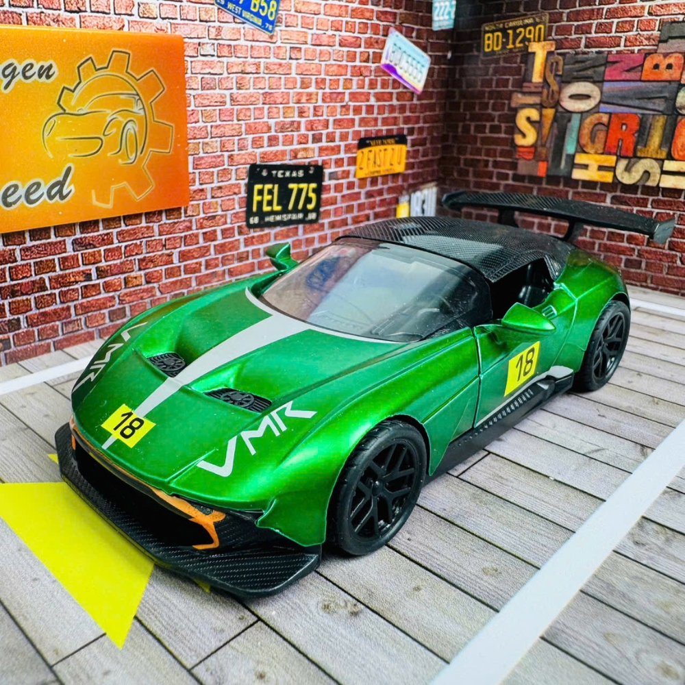 Mô Hình Xe Đua Xanh Lá 18 tỉ lệ 1:36 Hợp kim có thể mở cửa - bánh sau chạy cót - Dài 12.5cm - rộng 5.5cm - cao 3.5cm - nặng : 300gram - FULL BOX : box màu SKU : oto534b - K53-T3-S2
