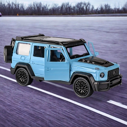 Mô Hình Xe Mẹc g63 xanh trời  tỉ lệ 1:43 Hợp kim có thể mở cửa - bánh sau chạy cót - Dài 11.4cm - rộng 4.5cm - cao 4.7cm - FULL BOX : box màu SKU : oto552h - (VAT: 003-01-35) - K54-T3-S2