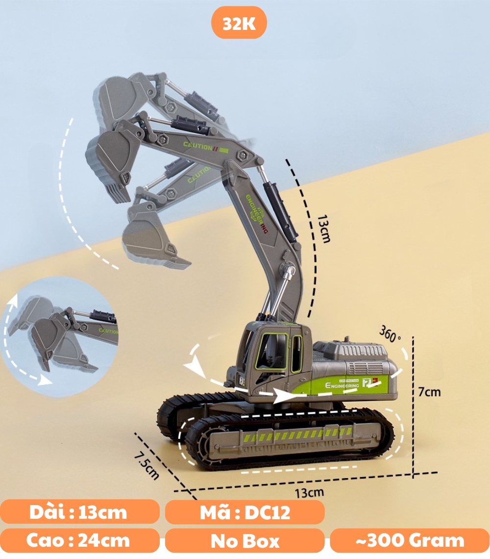 🔥Đồ Chơi Trẻ Em Combo 2 Xe Cẩu Múc Cam Và Đen Chạy Cót - Cao : 24cm Dài : 13cm - Nặng : 300gram - Bọc Túi