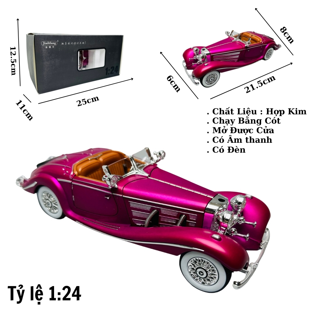 🔥Mô Hình Xe cổ tím 1:24 Hợp kim có thể mở cửa - bánh sau chạy cót - Có tiếng - đèn pha sáng - Dài 21.5cm - rộng 8cm - cao 6cm - nặng ~ 1000gram - FULL BOX : box màu