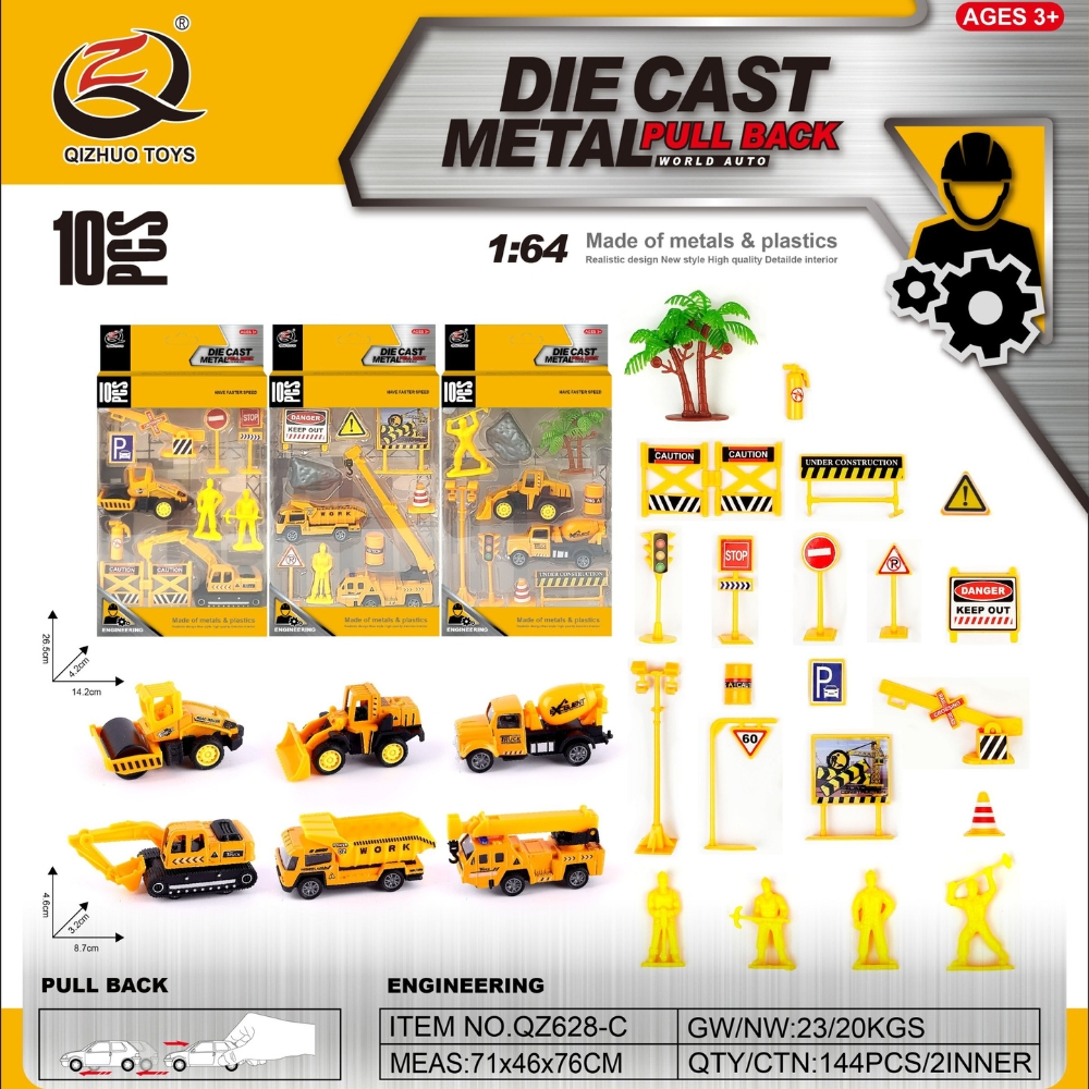 Vỉ Xe công trường + tiểu cảnh - SKU : oto-QZ628-C - ( Vat : 003-03-30 )