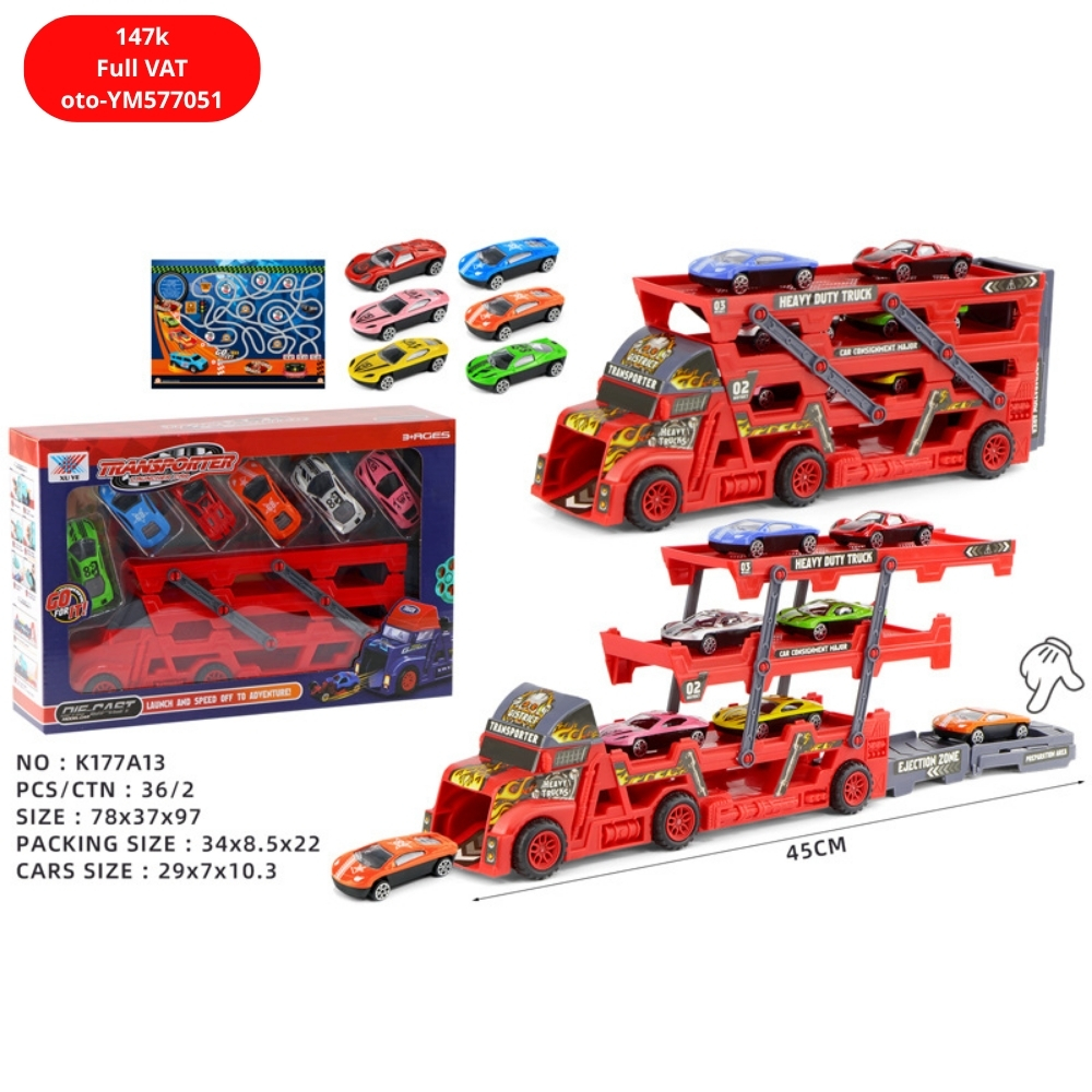 Mô Hình xe container chở xe Đỏ SKU : oto-YM577051 ( VAT 003-01-100 ) - K53-T5-S1