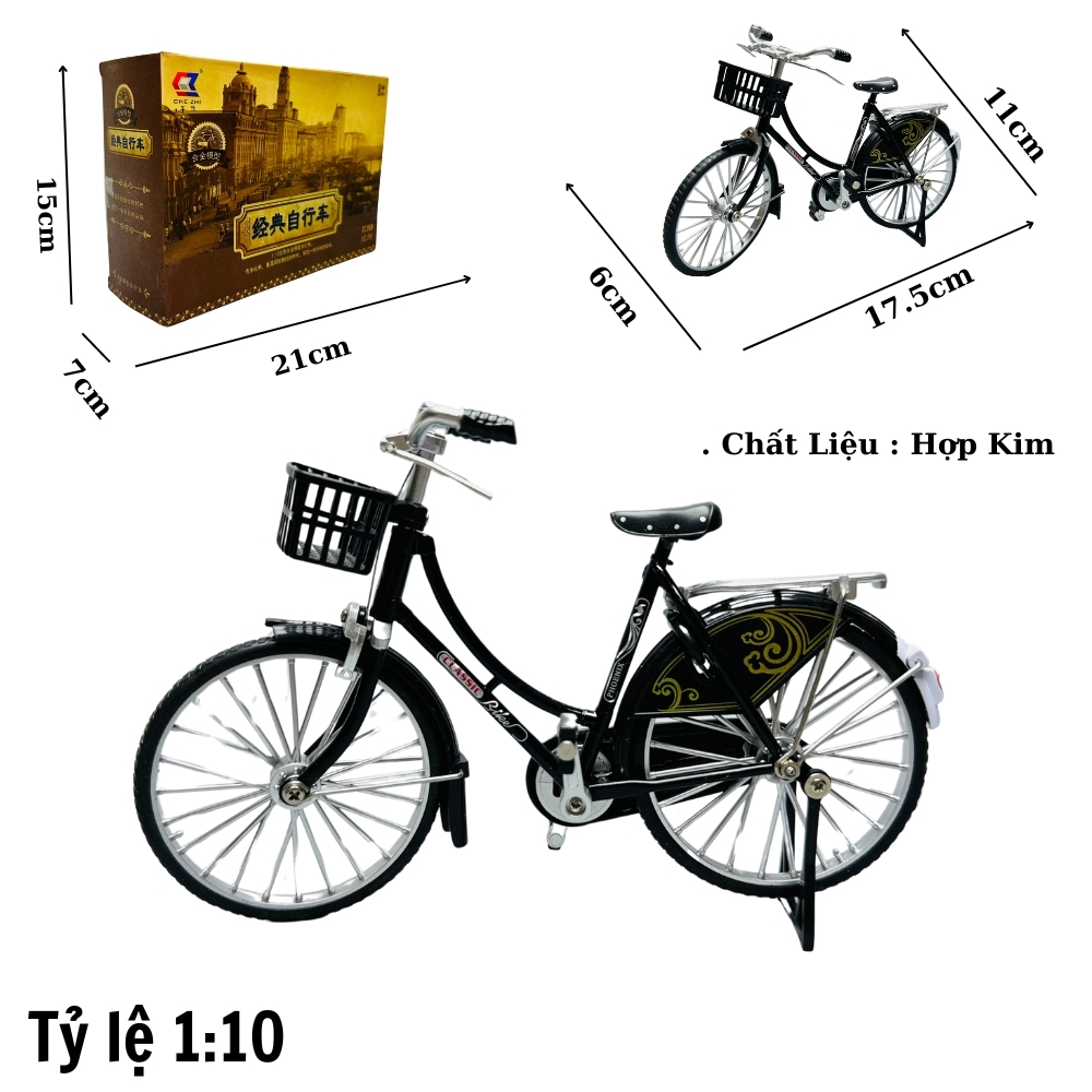 Mô Hình Xe đạp có giỏ 1:10 Hợp kim - Phụ kiện : bơm - Dài 17.5cm - rộng 6cm - cao 11cm - nặng ~ 500gram - FULL BOX : box màu SKU : oto159 - K64-T4-S1