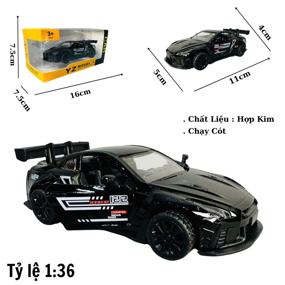 🔥Mô Hình xe GTR Đen tỉ lệ 1:36 Hợp kim có thể mở cửa - bánh sau chạy cót - Dài 11cm - rộng 5cm - cao 5cm - nặng : 500gram - FULL BOX : box màu