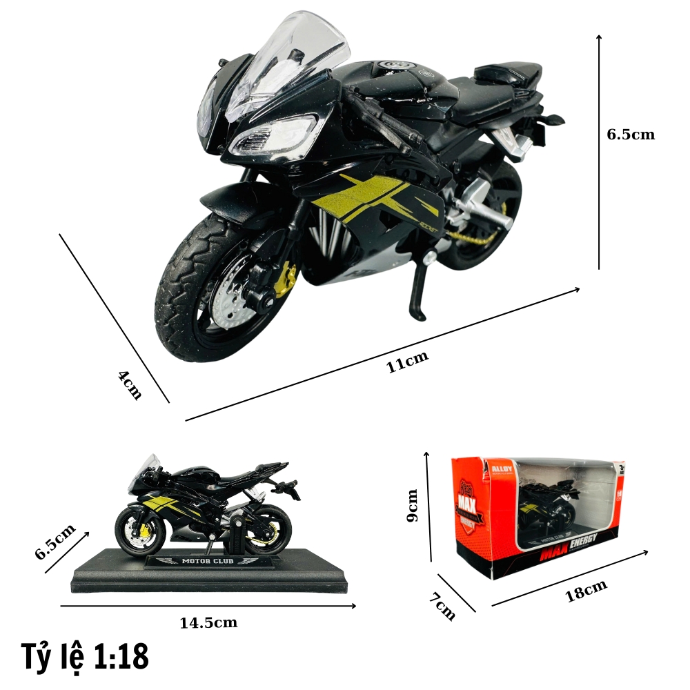 🔥Mô Hình xe máy Đen Lé Vàng 1:18 Hợp kim - Dài 11cm - rộng 4cm - cao 6.5cm - nặng ~ 300gram - FULL BOX