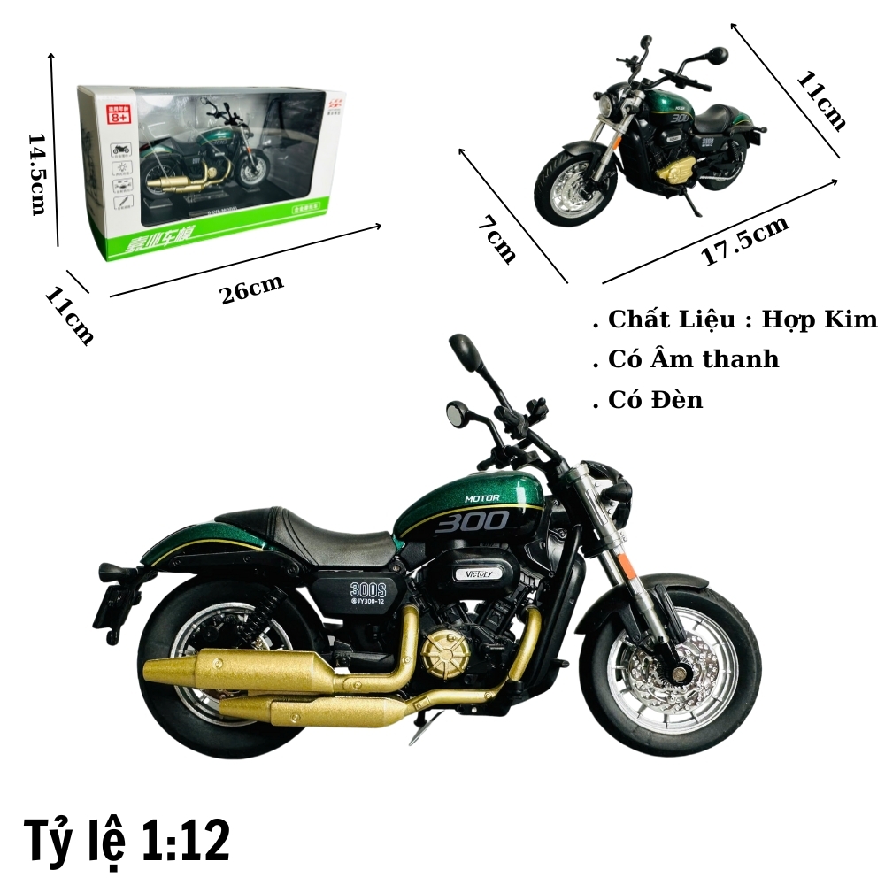 🔥Mô Hình xe máy shan300 1:12 đen Hợp kim - Có tiếng - đèn pha sáng - Dài 22cm - rộng 9cm - cao 13cm - nặng ~ 1100gram - FULL BOX : box màu SKU : oto335