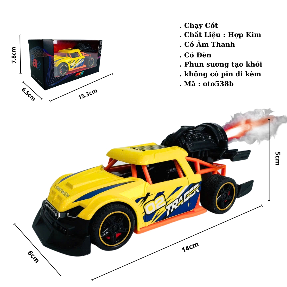 Mô Hình Xe phản lực màu vàng Hợp kim - bánh sau chạy cót - tạo khói - Dài 14cm - rộng 6cm - cao 5cm - nặng : 300gram - FULL BOX : box màu SKU : oto538b - K53-T1-S2
