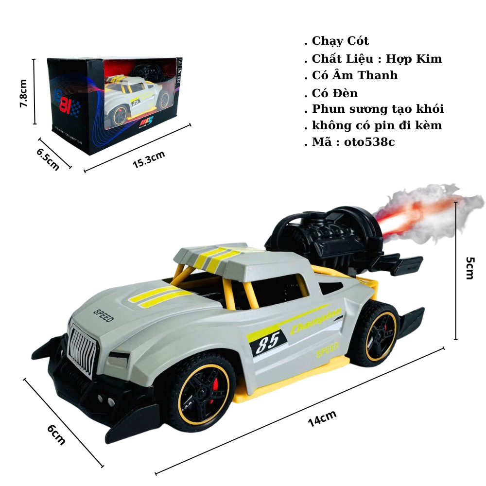 Mô Hình Xe phản lực màu ghi lé vàng Hợp kim - bánh sau chạy cót - tạo khói - Dài 14cm - rộng 6cm - cao 5cm - nặng : 300gram - FULL BOX : box màu SKU : oto538c - K53-T1-S3
