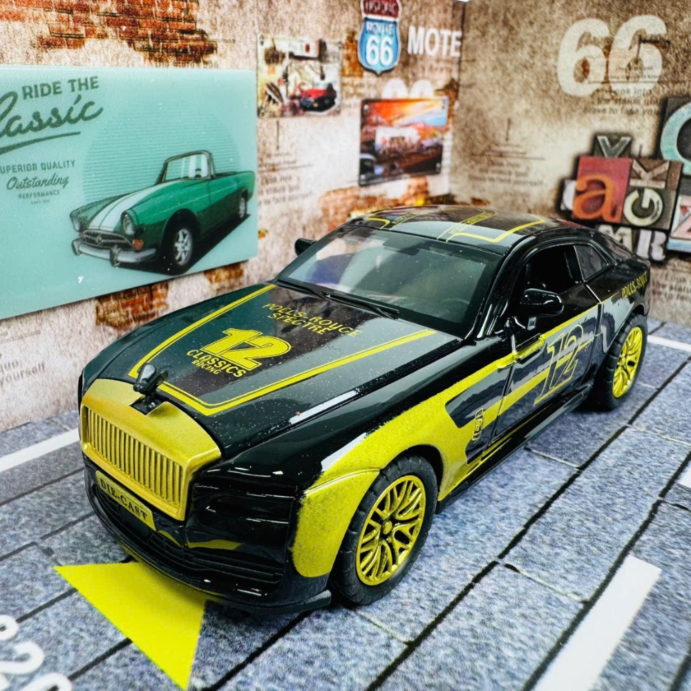 Mô Hình Xe roll royce đen đua tỉ lệ 1:36 Hợp kim có thể mở cửa - bánh sau chạy cót - Dài 12.5cm - rộng 5.5cm - cao 4cm - nặng : 300gram - FULL BOX : box màu SKU : oto526 - K52-T2-S7