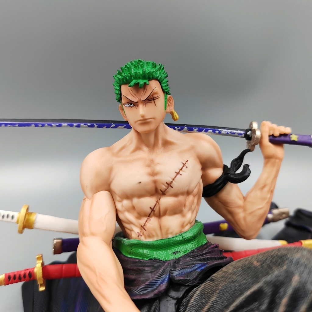 Mô Hình One Piece Zoro ngồi vác kiếm - Cao 11cm - Nặng 380gram - Có Hộp màu - Phụ kiện : Kiếm - Figure anime One Piece